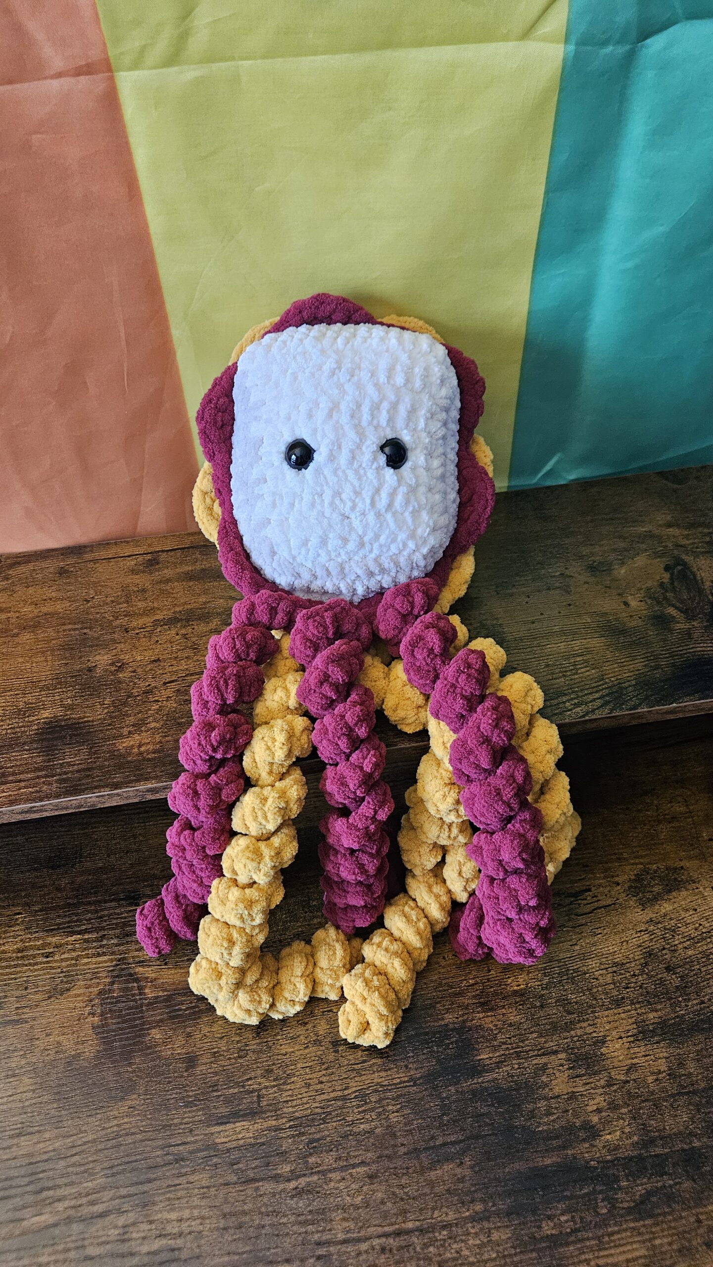 Amigurumi peanut butter jellyfish! The visuals of this plush may vary slightly as it is handmade. Spot clean only!! MEASUREMENTS – 18″ tall including tentacles, 7″ tall excluding tentacles, 6″ wide, 3 1/2″ deep. MEASUREMENTS MAY DIFFER 1-2 CM. This plush is made to order. Pattern by CroutonsCrochet. If you have any questions or concerns please contact me at “[email protected]”.